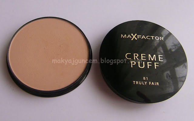 Max Factor Creme Puff,çoğu kişinin memnun olduğu hatta baya fanı olan bir pudra.Fondöten ve pudra özelliği birarada olduğundan kapatıcılık özelliği gayet iyi.Her türlü cilt tipi için uygun.Mat bir bitirişi var.Çok sorunlu bir cildiniz varsa fondötenden sonra bu pudrayı uygulayabilirsiniz ve kadife görünümlü bir cilde sahip olabilirsiniz.Şayet sorunlu bir cildiniz yoksa sadece bu pudrayı uygulayarak pürüzsüz ve profesyonel görünümlü bir cilde sahip olabilirsiniz.Karma bir cildim olmasına rağmen cildimde yağlanma ve parlama gibi bir sorun yapmadı.Ürün 21 gr,yani gayet uzun süre gidecek cinsten.Fiyatı haricinde diğer özellikleriyle gayet tatmin edici bir pudra.